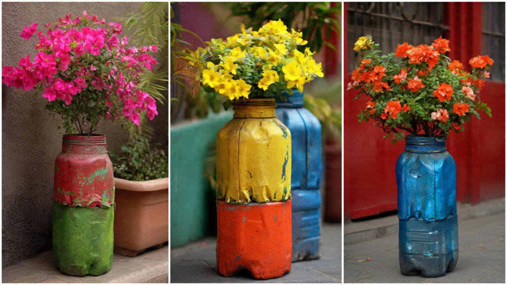 Whether you have a spacious backyard or a cozy balcony, recycled plastic bottle planters can add color, personality, and sustainability to your green space.